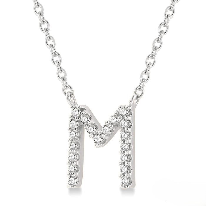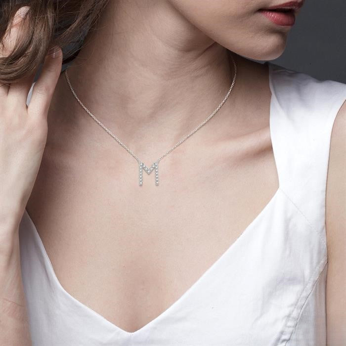 Collier en or blanc 10 carats avec initiale « M » sertie de diamants : un style intemporel et personnalisé